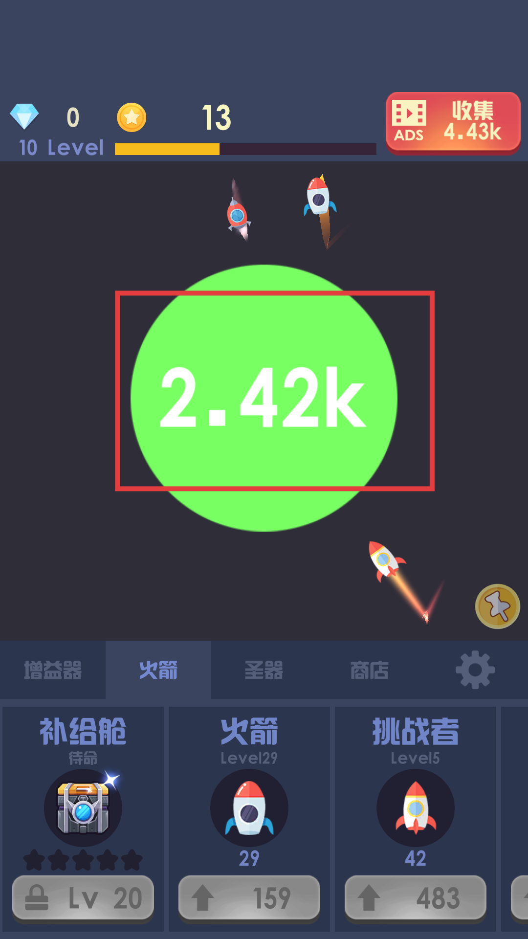 3、后期会出现这种特别大的数字,可借助火箭将其攻破,积累资源,不断的推进游戏。