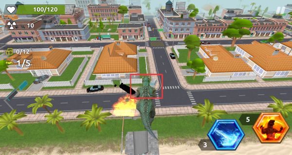 2、引导哥斯拉前往建筑区域,主动破坏房屋等建筑,过程中收集核能等资源,提升自身的能力。