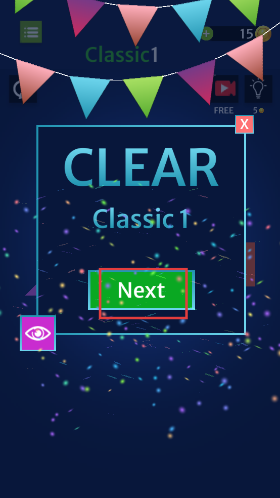 3、当所有图形拼接完成,填满黑色轮廓后,点击“Next”按钮,进入下一个关卡继续挑战拼接任务。