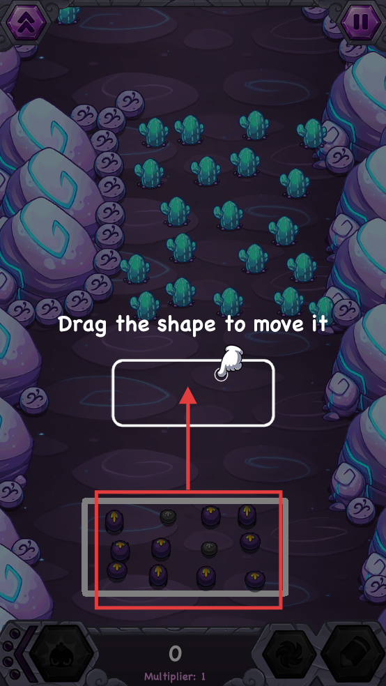 1、进入作品后,根据上方的提示,拖动下方形状,使其在有仙人掌等障碍的场景中移动。