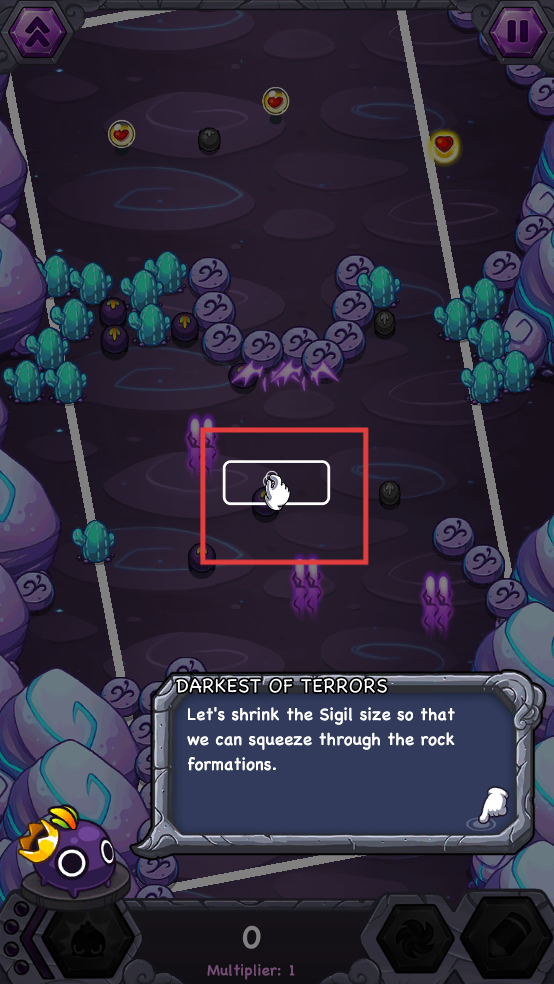 3、按照提示缩小印记的尺寸,让小兵们都聚集到一起,以便能穿过岩石构造的区域,顺利的推进。