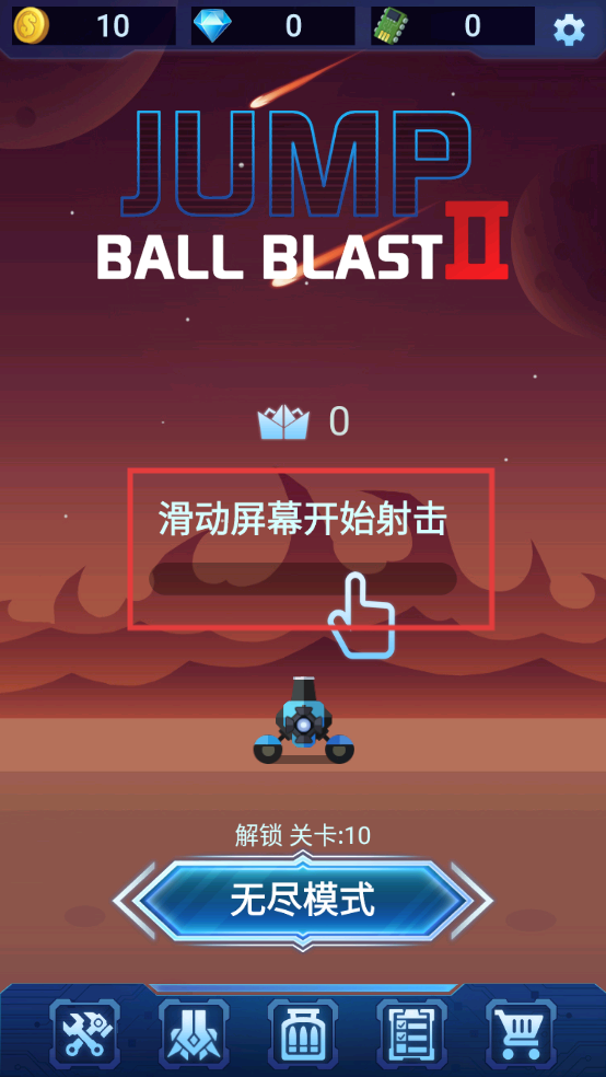 1、看到“滑动屏幕开始射击”提示后,滑动屏幕操控下方炮台,瞄准上方带有数字的彩色球体进行射击。