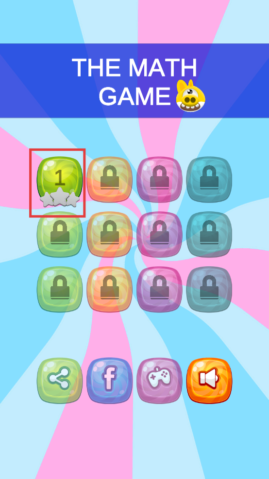 1、进入作品后,映入眼帘的就是关卡选择界面,点击标有“1”的绿色关卡按钮,即可开启第一关。