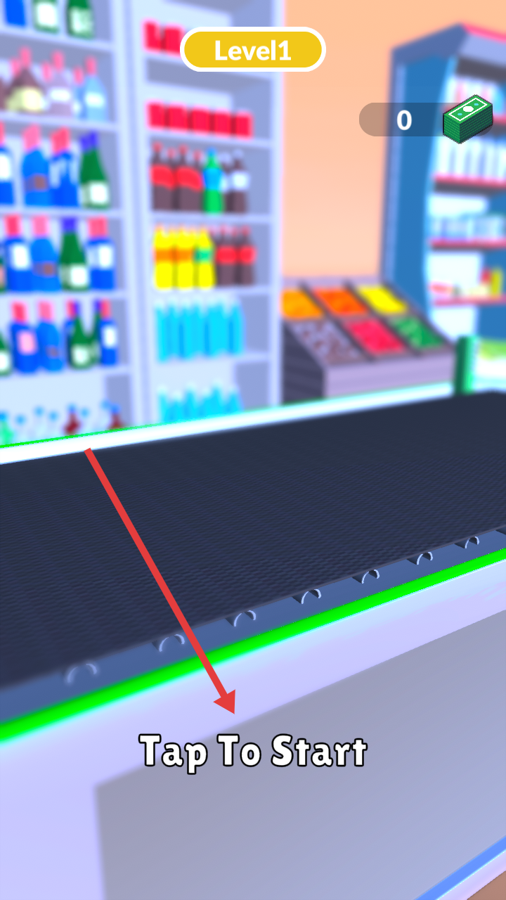 1、点击TapToStart开启Level1,商品会随着传送带持续移动,需精准进行点击或滑动操作,避免商品从传送带上掉落。