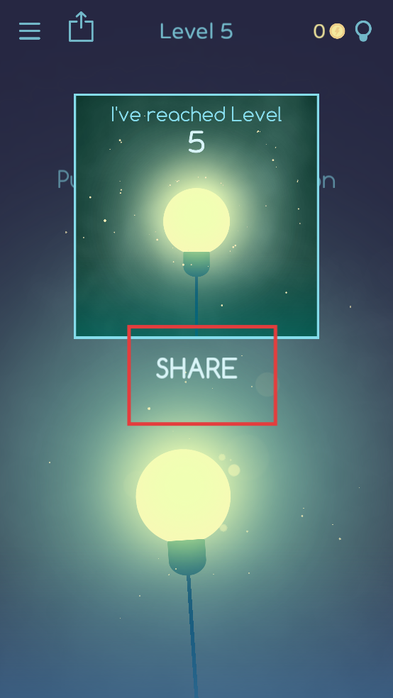 3、过关后灯泡会亮起,要是想分享游戏成果,我们只需要点击哦们中间的按钮即可。