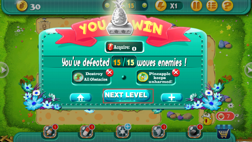 3、成功抵御所有敌人后,会出现“YOUWIN”的胜利界面,此时点击“NEXTLEVEL”按钮,即可进入下一关。