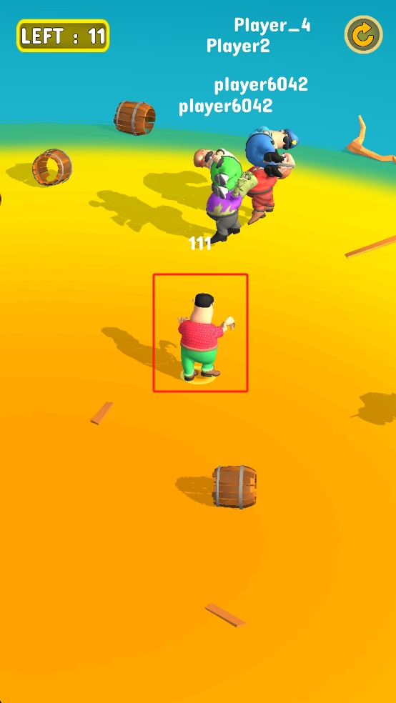 1、开局我们操控角色在场景内移动,寻找其他玩家角色,利用碰撞等方式将其推出安全区域。