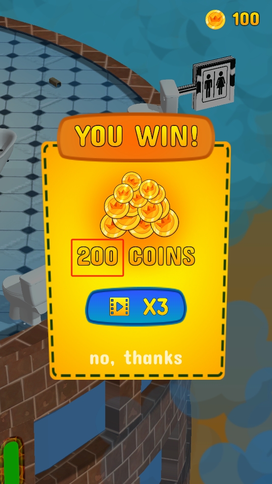 3、当成功淘汰所有其他对手后,游戏胜利,会获得金币奖励,可根据自身需求选择是否观看视频来倍数获取金币。