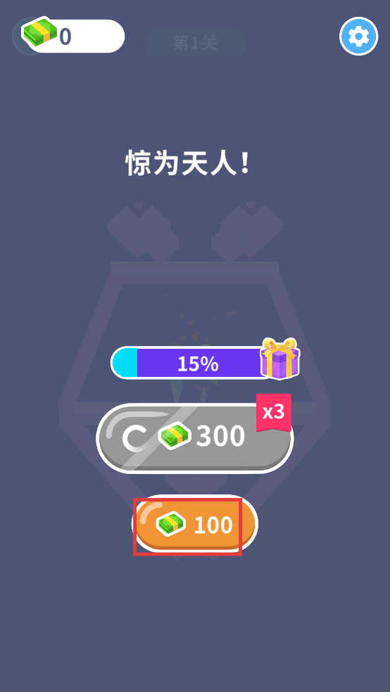 3、当关卡完成之后,点击橙色的标有“100”的按钮,从而获取相应的奖励,以便继续进行后续关卡的挑战。