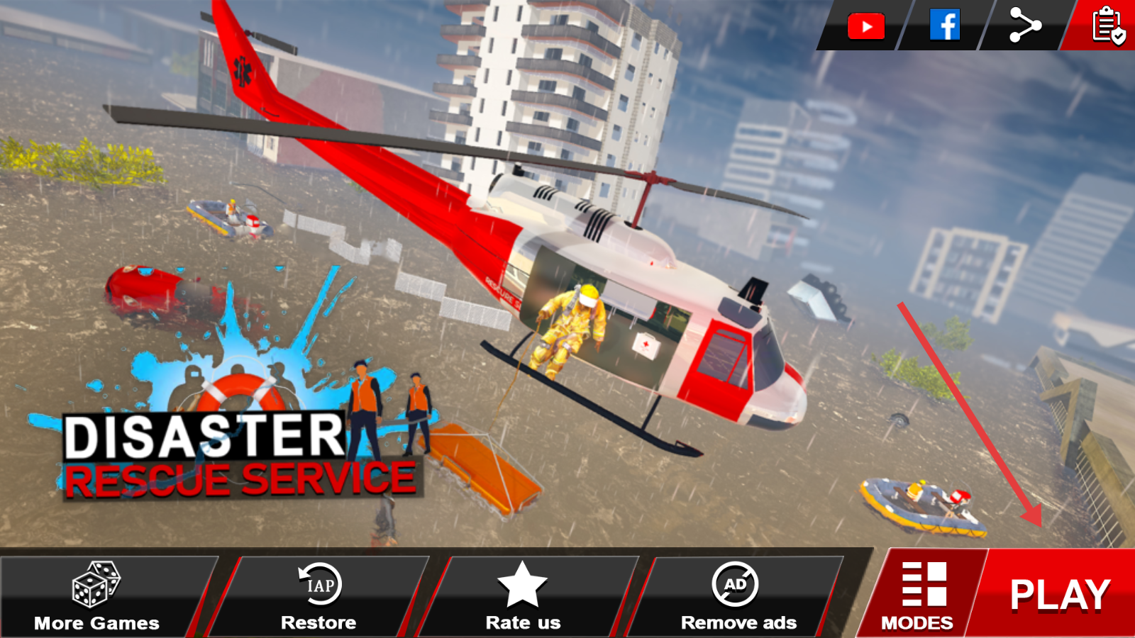 1、点击主界面右下角红色PLAY按钮,进入DisasterRescueService灾难救援服务游戏,开启救援任务。