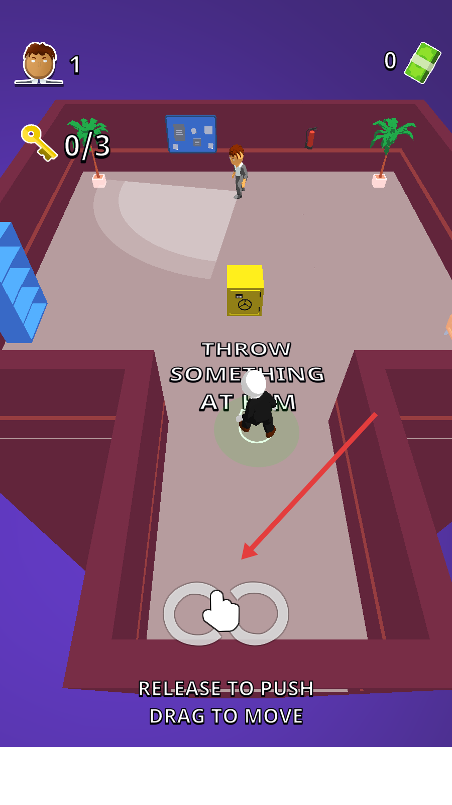 2、滑动底部∞形按钮蓄力,瞄准目标人物,松开触发投掷,命中后完成LEVEL1挑战。