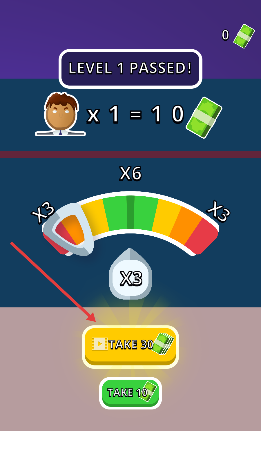 3、通关后,选TAKE10直接领奖励,或点TAKE30看广告获更多,积累资源解锁新关卡。