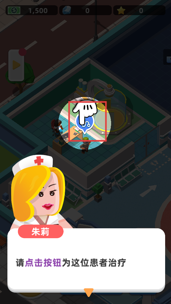 3、雇佣医生后,我们可以点击科室里的治疗按钮,为患者进行治疗,完成这一环节的操作。