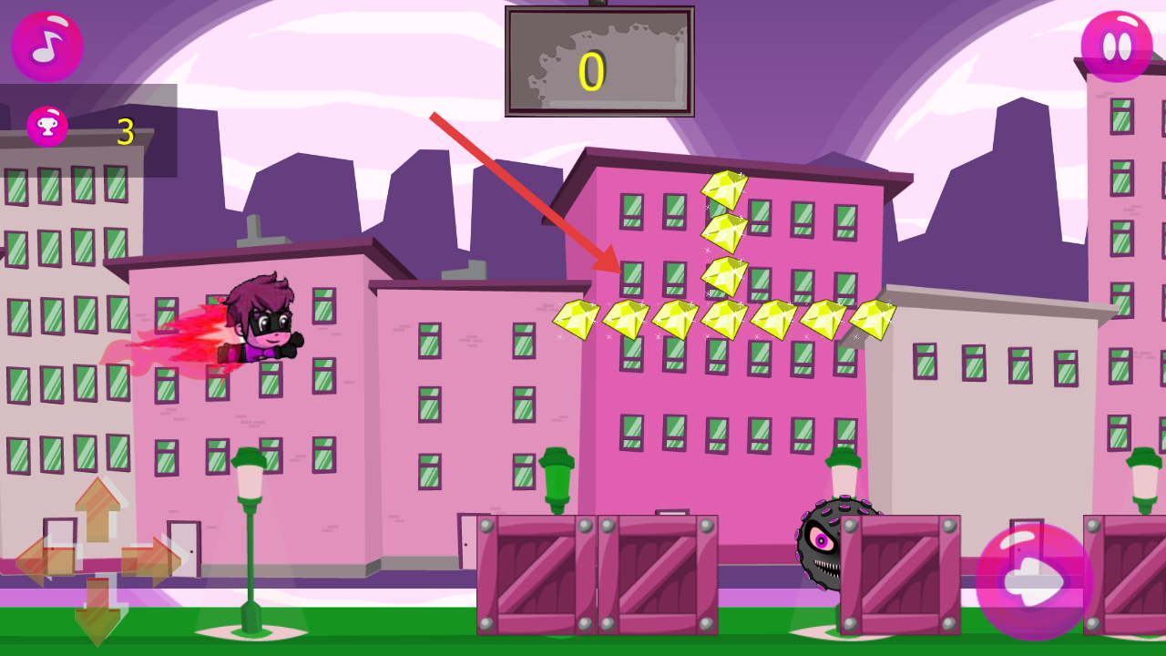 2、飞行中紧盯黑色怪物,灵活用左右按键移动,精准收集空中黄色钻石,积累资源强化角色。