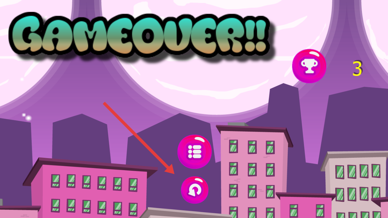 3、若遭遇GAMEOVER,果断点击粉色重置按钮重启,调整飞行路线,持续收集钻石冲击通关。