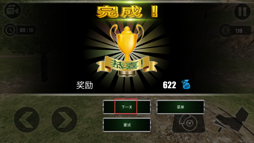 3、当成功抵达终点后,界面会显示完成的提示,此时点击“下一关”按钮,就可以继续去挑战后续的关卡了。