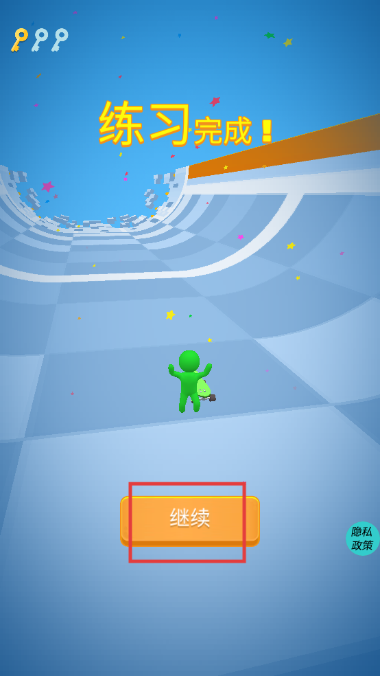 3、练习完成后,点击橙色的“继续”按钮,进入下一个游戏阶段,继续挑战新的赛道或内容。