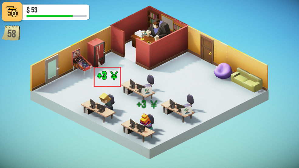 2、确保雇佣的职员都在工位上工作,这样会持续获得+3的收益,保证资金稳定的增长。
