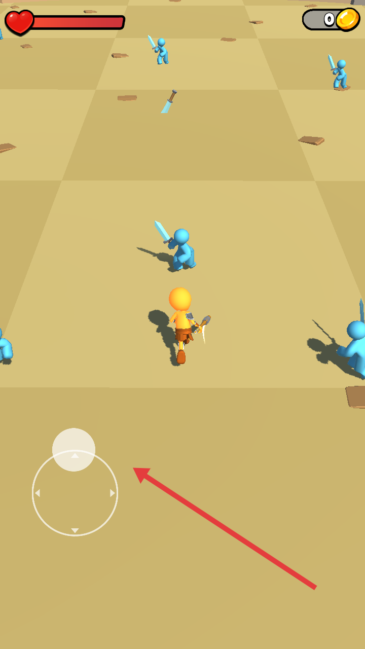2、战斗时,通过左侧摇杆操控移动,灵活走位躲避攻击,集中火力优先消灭威胁大的蓝色敌人。