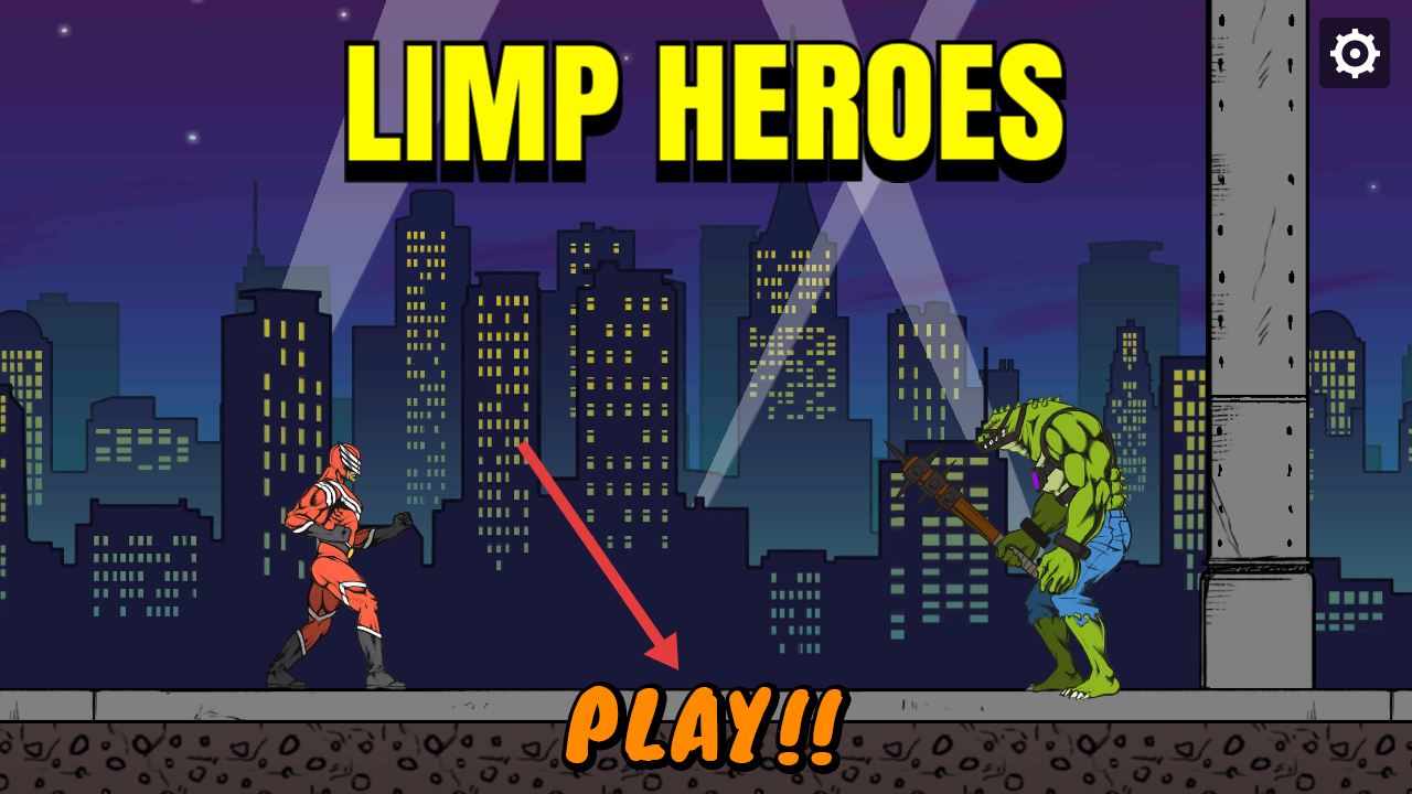 1、点击PLAY!开启LIMPHEROES战斗,操控红色英雄,对战持巨锤的绿色怪物。