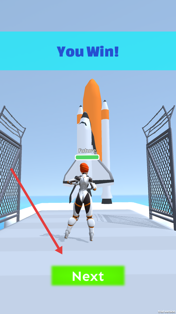 3、抵达Future阶段,角色变为机甲造型,通关后点击Next进入下一轮时代跑酷,解锁新角色与场景。