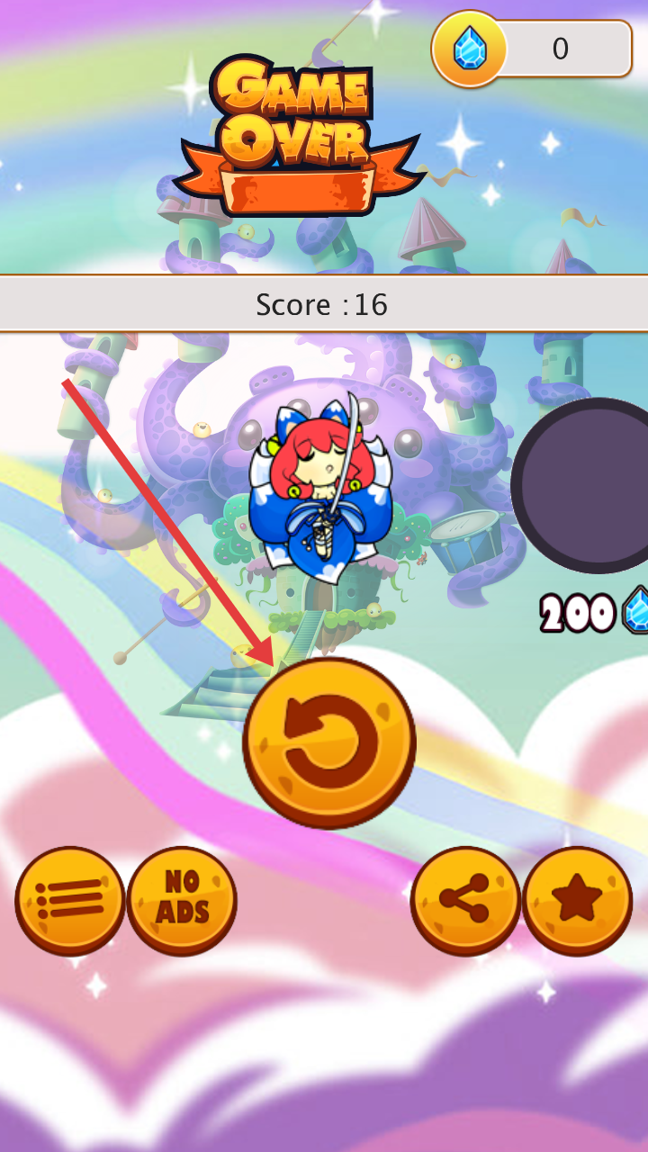 3、若GAMEOVER得分16,点击黄色重置按钮重新挑战,调整蓄力角度与力度,优化弹射路径,争取更高分数。