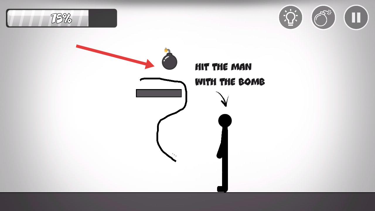 2、关卡中,引导炸弹,调整路径使其砸中火柴人,注意避开障碍,完成目标。