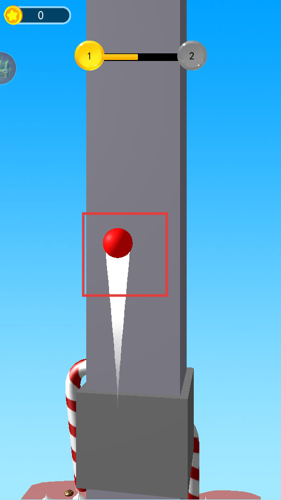 2、松开手后,弹球就会向上冲击,我们需要在他动力不足时点击屏幕,让弹球可以顺利的定在墙上。