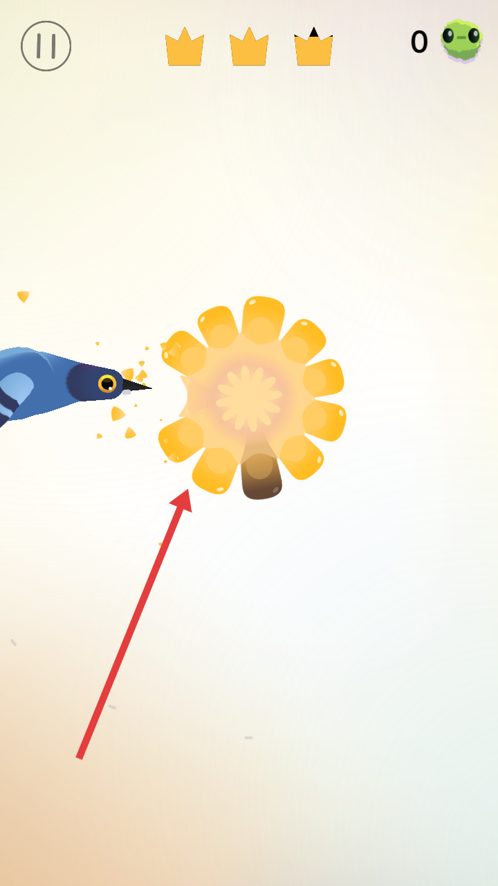 2、关卡里,引导小鸟精准撞击黄色花朵目标,把控飞行轨迹,顺利击碎花朵,推进游戏进程。