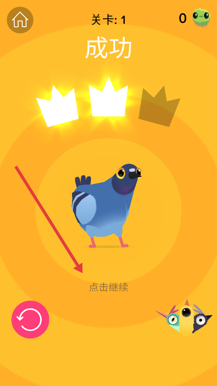 3、个性鸽子养成:通过闯关收集羽毛币,可解锁墨镜、飞行帽等趣味装饰,给鸽子打造专属造型,让你的鸽子在众多同类中独具特色。