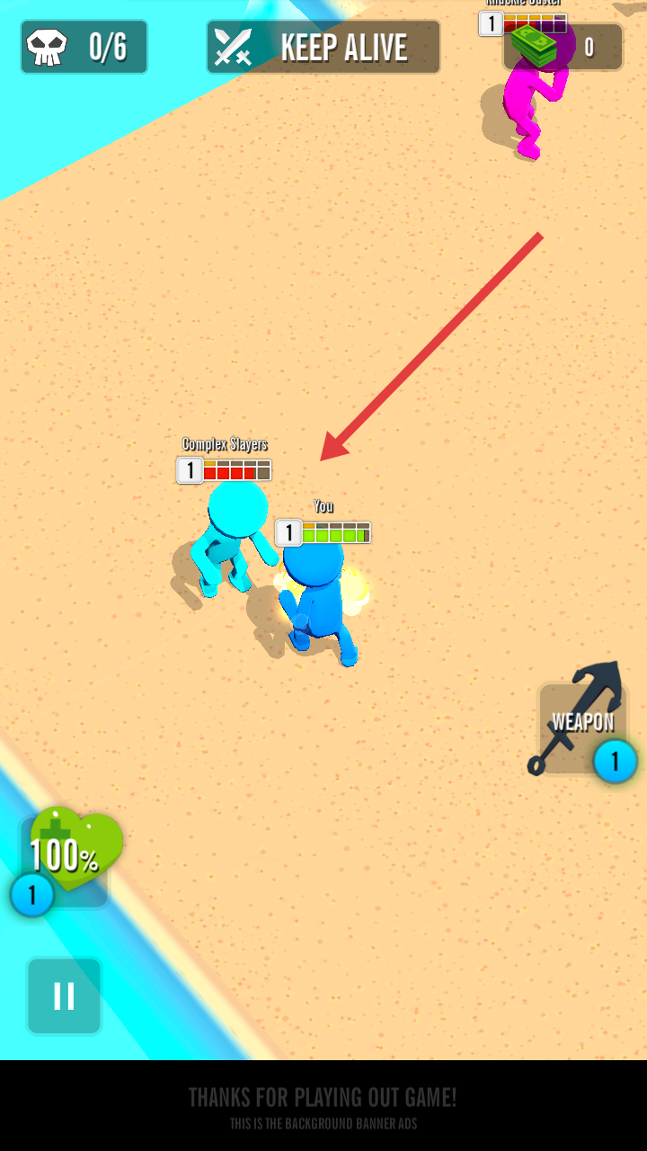 2、战斗中,与ComplexSlayers等敌人近战,利用移动躲避攻击,适时反击,注意右上角KEEPALIVE存活目标。
