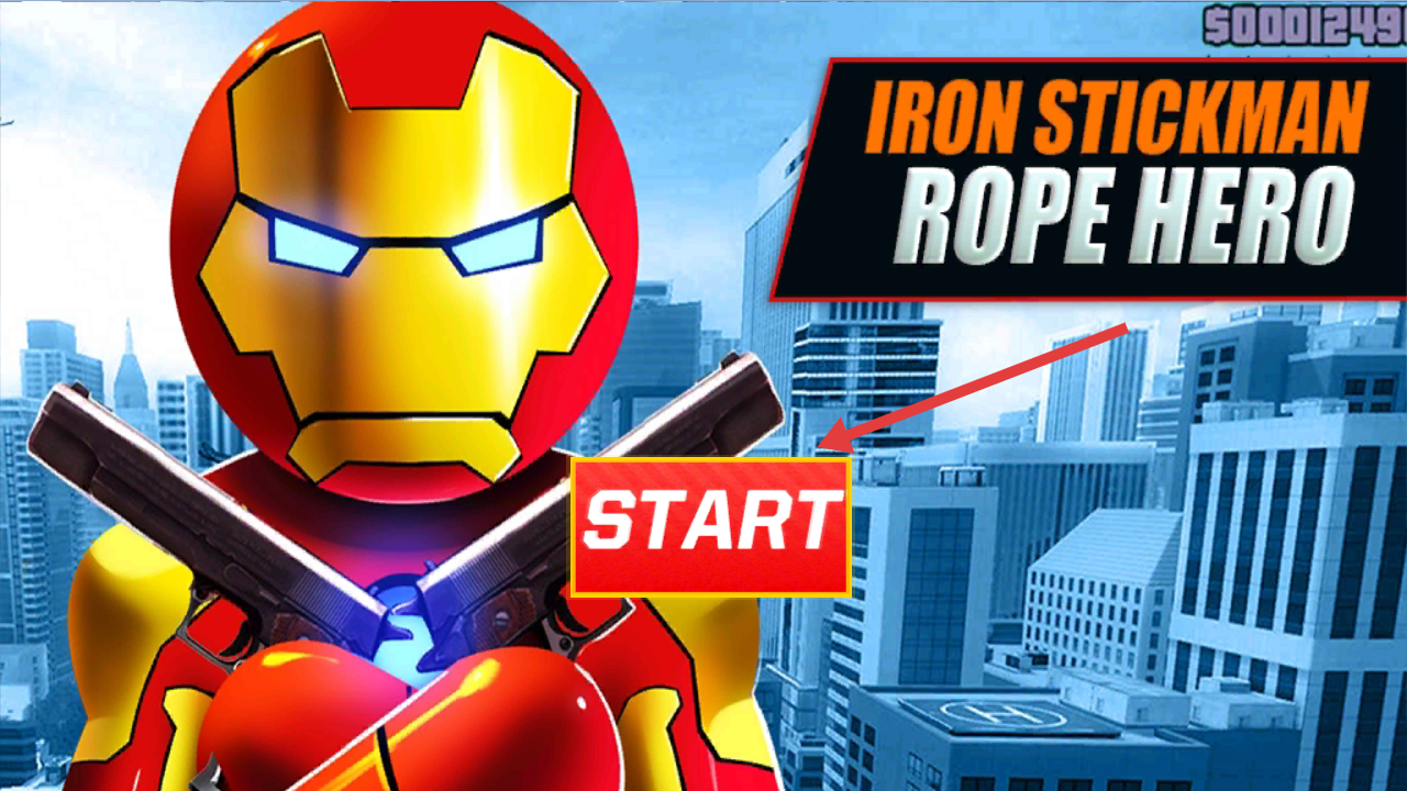 1、点击START按钮,进入IRONSTICKMANROPEHERO游戏,操控钢铁侠外观的火柴人,开启城市冒险。