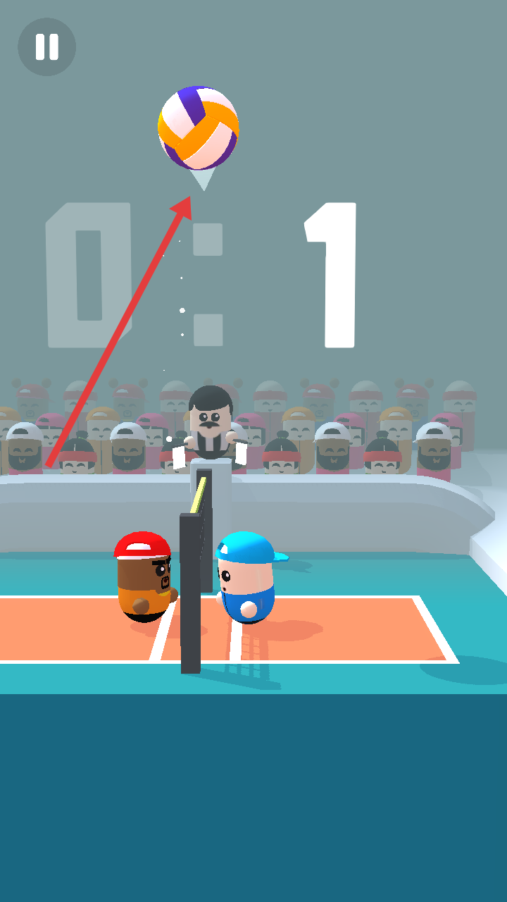 2、比赛中,紧盯排球轨迹,预判落点,点击屏幕让角色移动、击球,精准回击对手进攻。