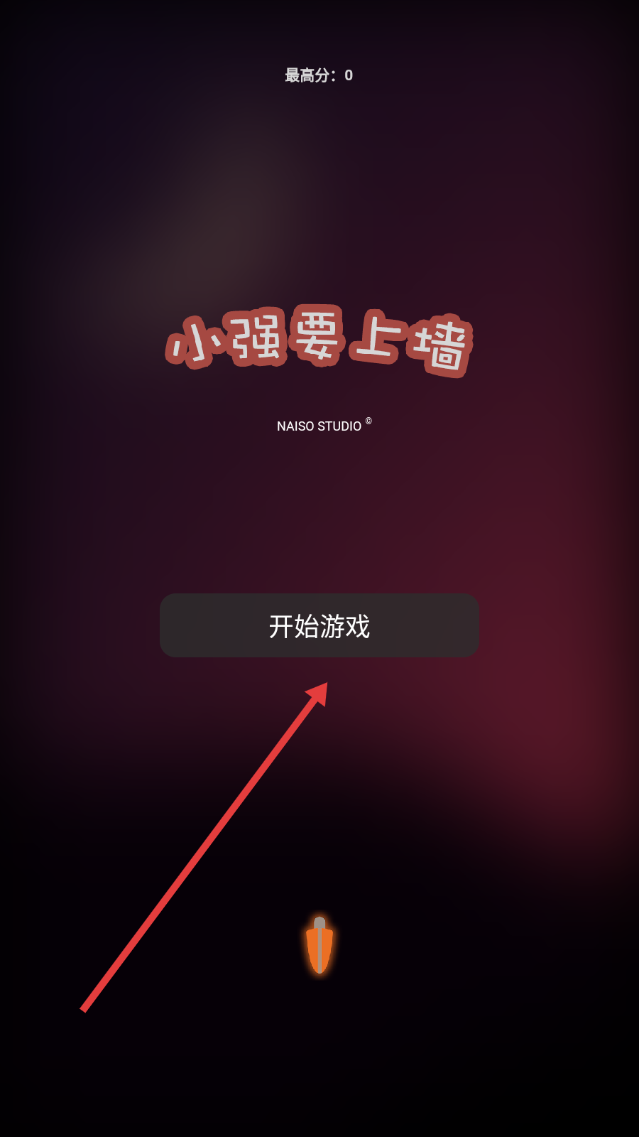 1、点击开始游戏,操控橙色小强,在砖墙场景中,长按屏幕蓄力,松手让小强弹起。