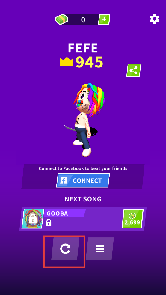 3、关卡结束后,界面会显示本局获得的分数,点击下方的图标,可重新开始当前歌曲挑战。