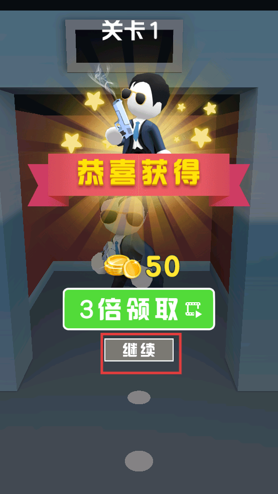 3、完成当前任务后,界面会弹出任务报告,界面显示获得50金币,点击红框内的“继续”按钮,进入下一关挑战。