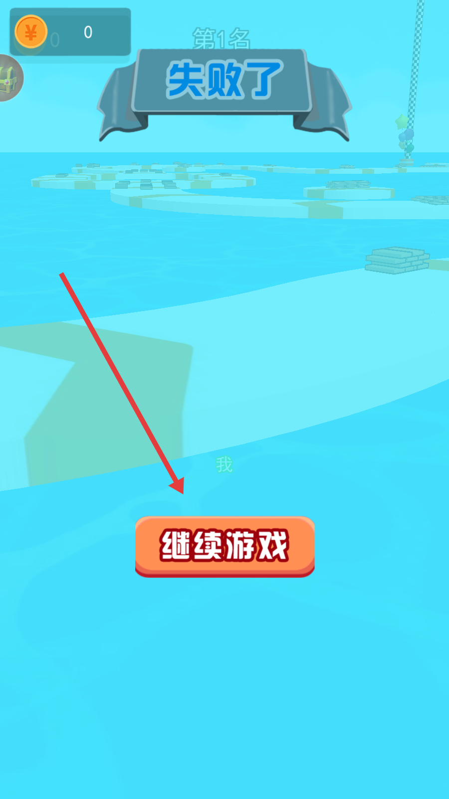 3、若落水失败,点击继续游戏重新挑战,积累经验,优化路线,提升通关率,解锁新皮肤、关卡。