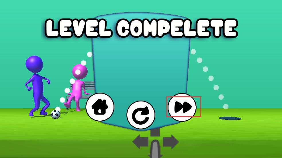 3、关卡完成后,点击红框内箭头按钮,进入下一关,挑战更复杂的场景布局与射门任务。