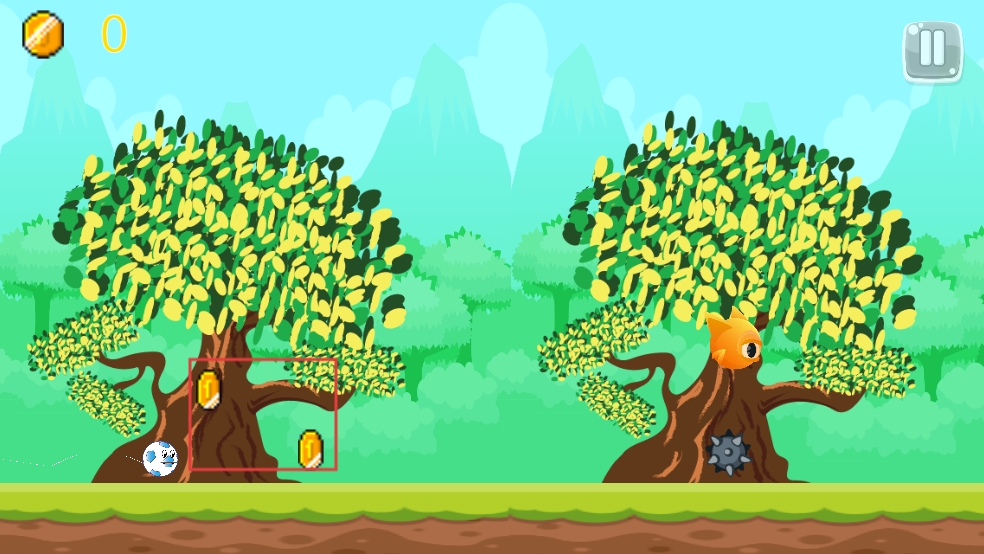 2、引导小球靠近树木区域,精准获取树干旁金币,注意规避洞里的尖刺,稳步的推进。