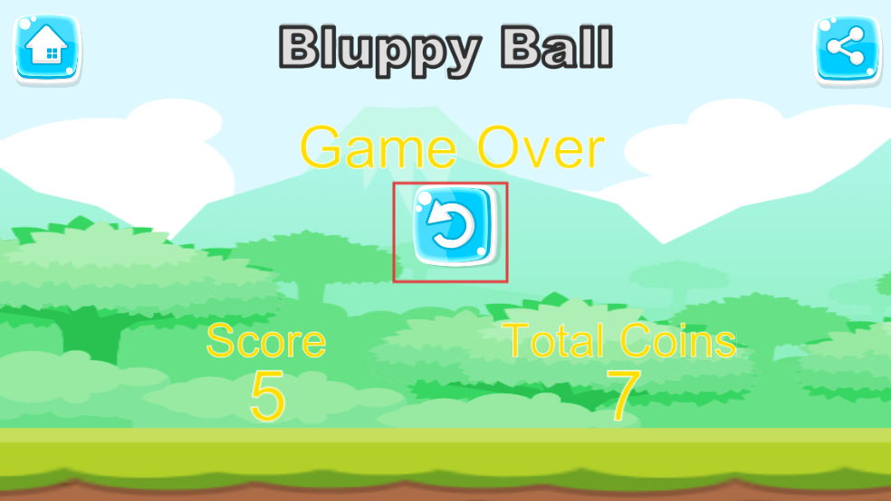 3、游戏失败后,点击界面中间蓝色重玩按钮,即可重新开始挑战,争取获得更好的成绩。
