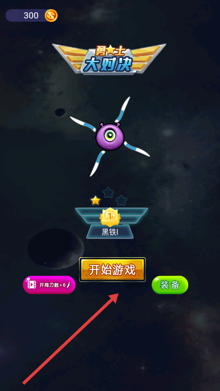 1、点击开始游戏,操控紫色独眼角色,在地图中收集武器,围绕自身形成旋转利刃,攻击其他玩家。