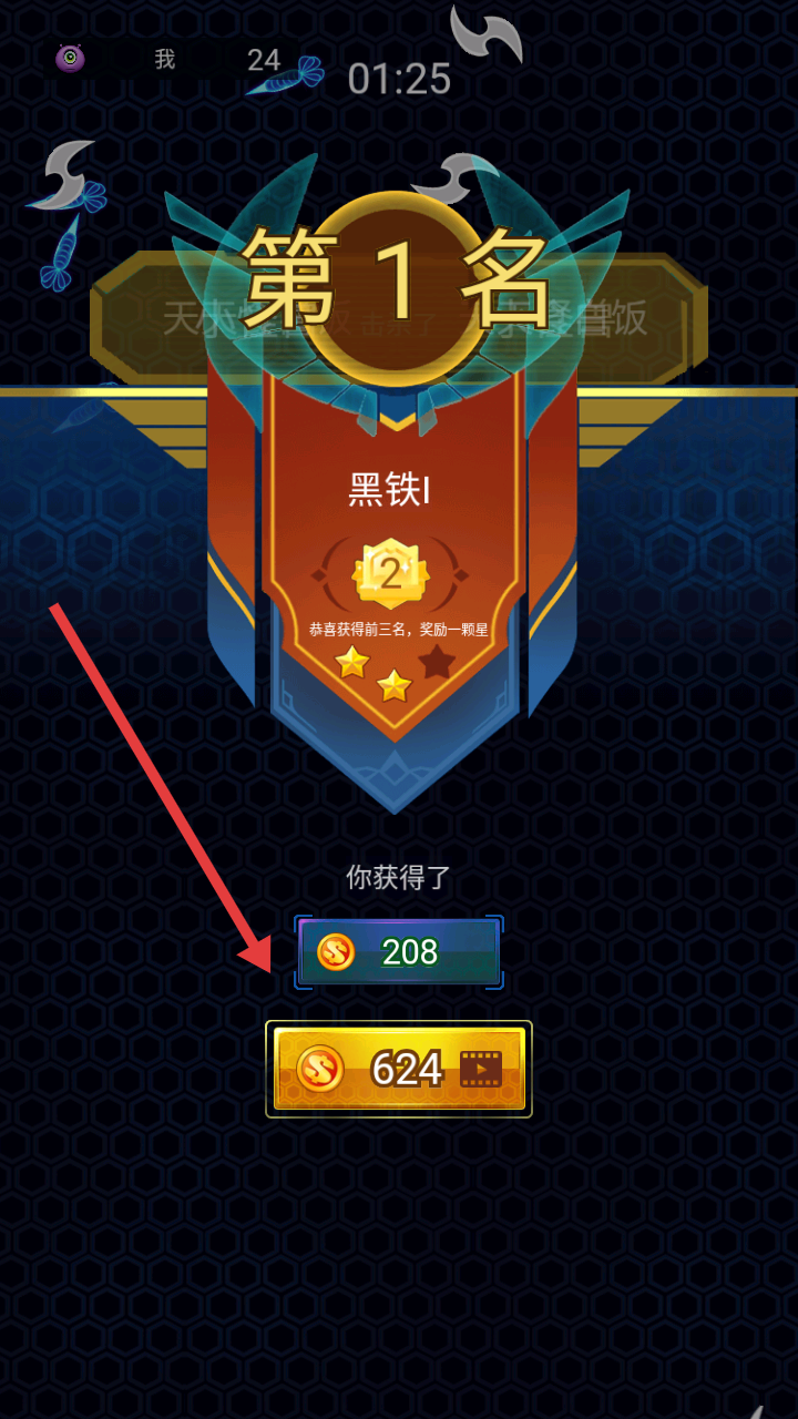 3、存活至最后获得第1名,领取金币奖励,可用于装备升级,继续挑战更高段位,提升游戏实力。