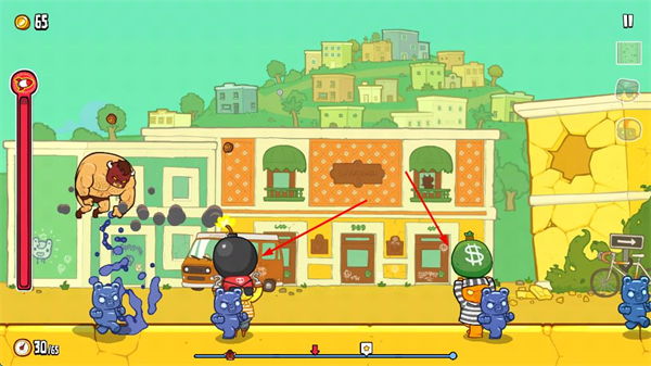 3、留意场景中的特殊道具,如钱袋可获额外金币,合理规划路线多收集资源。