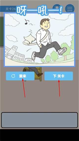 4、通关后点下关卡继续挑战,若想重玩当前关,点重来按钮,重新体验翘课解谜乐趣。