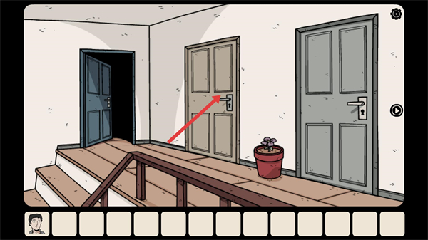 1、进入走廊场景后,点击目标房门可尝试进入新区域,新房间内可能存在解谜所需的道具或信息。