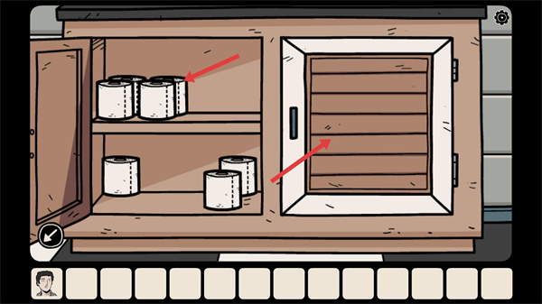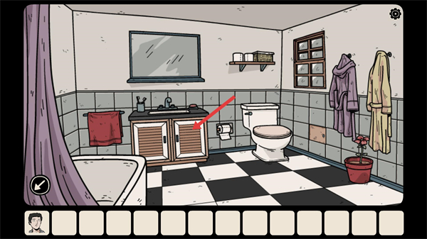 2、进入浴室场景后,观察洗手台的柜子区域,点击柜门可尝试打开,柜子内可能存放与解谜相关的道具。