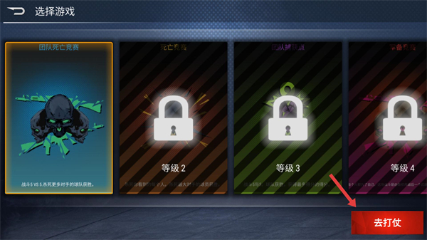 1、游戏模式选择界面中,【团队死亡竞赛】是新手可优先体验的模式。