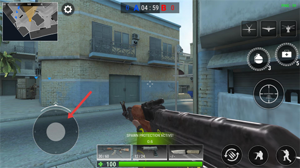 2、进入对局后会获得出生保护期,此阶段需利用【移动摇杆】熟悉视角控制。