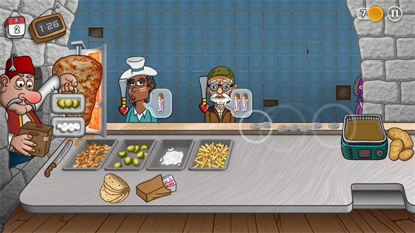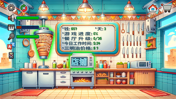 沙威玛传奇是一款超火的餐厅经营手游,在那套趣味十足的卡通画风里亲手卷起三明治,盯着滋滋冒油的烤肉和爽口的黄瓜,在那场忙碌的制作流程中感受当大厨的乐趣,靠着卖给顾客赚来的金币去升级店面装饰,在那堆高级工具和新鲜食材里搞建设,在那份简单直接的操作中看着餐厅越变越豪华,在那场追求全面繁荣的经营挑战里玩到停不下来。