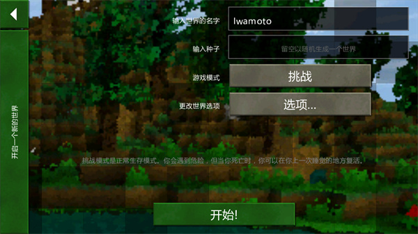 1、开启首页后,可在空格内输入自己想要的世界名字并点击开始;
